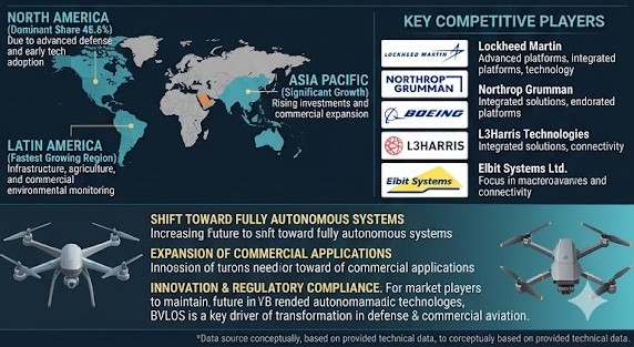 Latin America is emerging as the fastest-growing region, fueled by increasing adoption of BVLOS UAVs in agriculture, mining, and infrastructure monitoring.