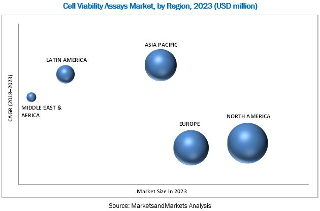 North America is expected to account for the largest share of the cell viability assays market in 2018, followed by Europe and Asia Pacific. The growing incidence rate of various infectious diseases, investment initiatives by the government, and the high-quality infrastructure for clinical and laboratory research are the major factors responsible for the large share of the North American cell viability assays market. Moreover, a number of major global players are based in the US, owing to which, the US is a center for innovation in the cell viability assays market.