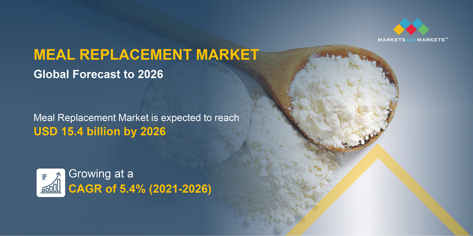 The global meal replacement market is projected to reach USD 15.4 billion by 2026, growing at a CAGR of 5.4% between 2021 and 2026.