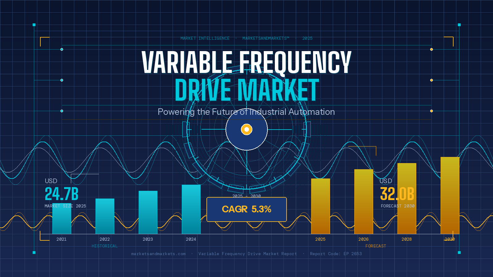 The Variable Frequency Drive market is projected to grow from USD 24.7 billion in 2025 to USD 32.0 billion by 2030, registering a Compound Annual Growth Rate (CAGR) of 5.3% during the forecast period. This expansion is underpinned by two converging forces: the increasing industrialization of emerging economies and the urgent need to reduce energy consumption across manufacturing, oil and gas, water treatment, and power generation sectors.