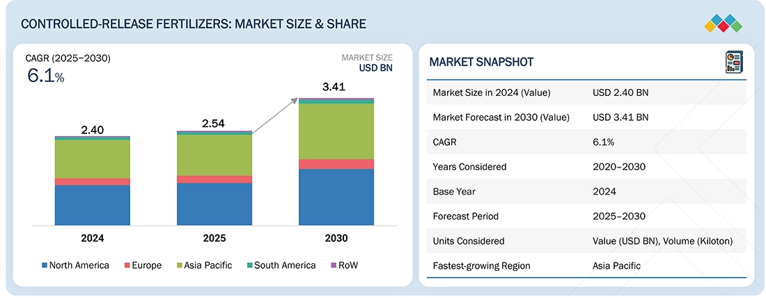 The Controlled-Release Fertilizers (CRFs) market is projected to grow from USD 2.54 billion in 2025 to USD 3.41 billion by 2030, at a CAGR of 6.1%.
