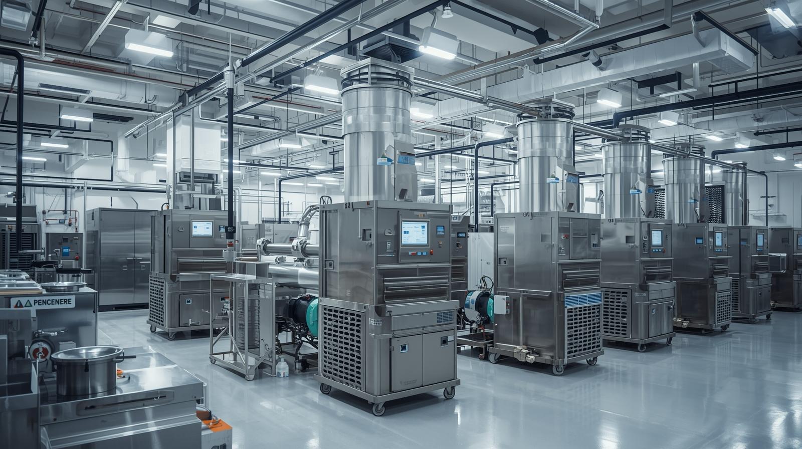 They filter air, control humidity, and maintain consistent temperatures to prevent contamination, bacterial growth, and spoilage in food processing and storage.