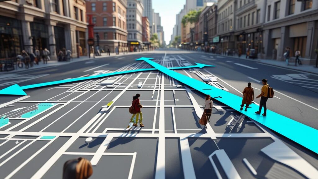 Augmented Reality (AR) navigation overlays digital information, such as directions, lane guidance, or points of interest, onto the real-world view of a user, often through vehicle windshields, head-up displays, smartphones, or wearable devices.