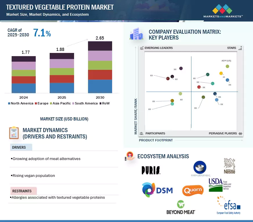 The global textured vegetable protein market is on a strong growth trajectory, projected to increase from USD 1.88 billion in 2025 to USD 2.65 billion by 2030, registering a CAGR of 7.1% during the forecast period.